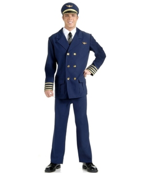Airline Pilot Adult Costume includes a navy blue jacket with gold stripe cuffs and buttons, matching blue pants, dickey and a coordinating pilot hat. This pilot costume is available in One sizes Fits Most Adults (up to 42" chest).Please note tie and shoes are not included.