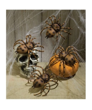 Send chills down their spines with these creepy crawling spiders! The Bag Of Spiders - Halloween Decoration includes 4 brown realistic looking spiders. Each spider is approximately 8' wide. Please Note: Skull and pumpkin are not included. Be sure to get some spider webbing (sold separately) for an eerie setting for your spiders!Material: plastic.