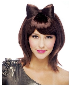 Bowtiful Auburn Adult Wig includes a short auburn wig with straight bangs and a bow on top. Available in one size fits most adults.Please note: Does not include costume or makeup.
