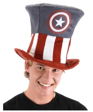 Captain America Mad Hatter Adult Hat includes one Superhero themed over sized top hat. This is an officially licensed Marvel (TM) product. This Movie Costume hat is available in one size fits most adults.Please note shirt and necklace are not included.