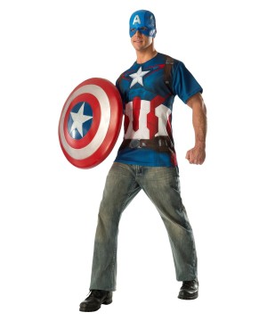 The Avengers 2 Captain America Men Shirt brings one short in sizes Medium, Large and X Large. It is made of polyester, PVC and polyurethane foam.