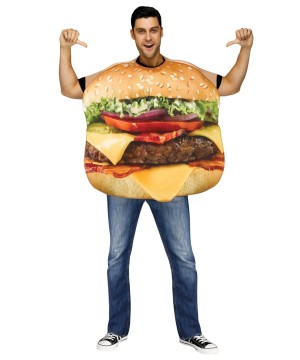This costume includes one tunic that is designed to look like a giant cheeseburger. Does not include a shirt, pants, or shoes. This costume is fabricated from Polyester material and Polyurethane Foam. Available in one standard size that is meant to fit most.