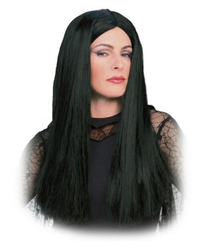 Morticia Wig - Adult Wig includes one long straight black wig. Please note costume and makeup are not included. This is an officially licensed Addams Family Costume (TM). This Morticia Costume accessory is available in one size fits most adults.Made of 100% Synthetic Fibers