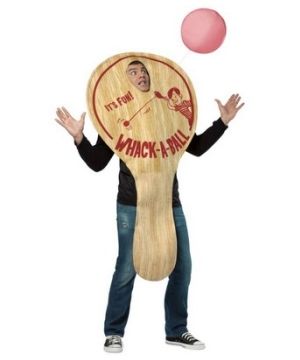 Paddle Ball Adult Costume includes a tunic in the shape of a wooden paddle, a ball attached to a string an opening to insert your head. This Funny Costume is available in One Standard Size fits most adults.Please note: Does not include shirt, pants or shoes.