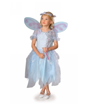 Powder Pixie Kids Costume includes: light blue decorated long dress with tied-up lace in the back, flowered matching headpiece, wand and removable character wings. Available in child sizes: Toddler (2-4) for 1 to 2 years old, Small (4-6) for 5-7 years old and Medium (8-10) for 5 to 7 years old.Made of 100% polyester (exclusive of trim). Care instructions: hand wash with cold water, line dry, do not bleach.