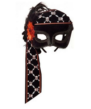 A elegant mask for any pirate, vampire or gothic! Skull Bandanna Mask - Adult Accessory includes black half mask with attached feathers, red flower, and skull and crossbones scarf. This mask is available in One size fits most adults.Brand: Forum Novelties