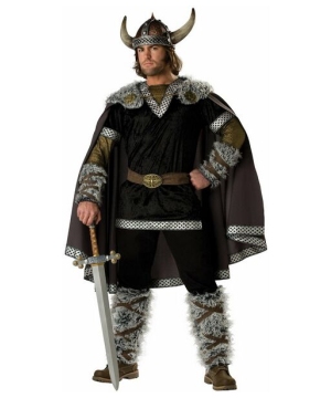 Our Viking Warrior Costume - Adult Costume includes includes Tunic with Celtic trim accents and attached chainmail sleeves with fur guantlets, vinyl helmet, fur boot covers, belt with Celtic buckle, and cape with Celtic trim accents and medallions. Please note: Pants and sword NOT included. This Viking Adult Costume is available in Large the measures is (Neck 16-16.5, chest 42-44, waist 36-38, and sleeve 34.5-35) and X-Large (Neck 17-17.5, Chest 46-48, waist 40-42 and sleeve 35-35.5.Made of 100 Polyester.