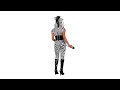 Zebralicious Adult Costume includes black and white zip front, v-neck pantsuit with attached character hood, corset with boning and a matching removable tail. This Sexy Costume is available in women's size X-Small, Small, Medium, and Large.Does not include shoes.